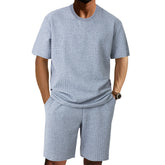 Mens Casual Retro Crew-Neck Short-Sleeve Set