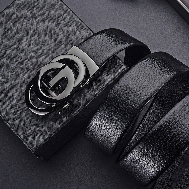 Mens Embossed Hollow-out Genuine Leather Belt