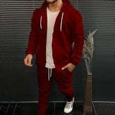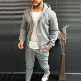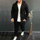 Mens Fashion Solid-Color Casual Hooded Cardigan Set